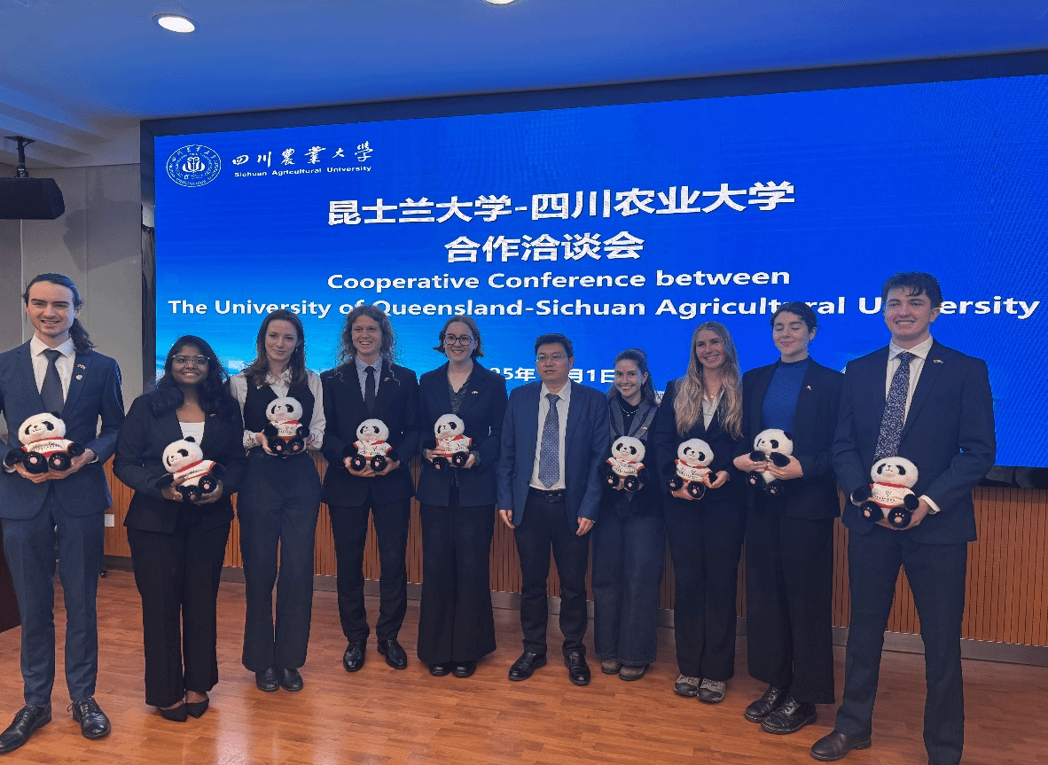 11月25日﹣12月5日,澳大利亚昆士兰大学9名学生及随行教师组成的"2025中国新农业探索项目"代表团在我校开展了为期2周的访学交流。